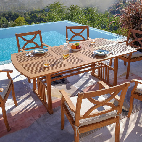 Cambridge Casual understands that no two homes are alike. That's why our range includes both classic teak favorites and luxury statement pieces. For instance, the Hans Teak Wood 3 Pieces Patio Conversation Set introduces a contemporary edge by pairing high-quality Indonesian teak wood with a black matte powder-coated durable aluminum frame. This subtle blend of materials offers strength and a modern contrast, making it a standout piece for any sophisticated patio or deck. These sets, including the Dunham Teak Wood 3 Piece Patio Conversation Set with its ergonomic curves and complimentary lumbar pillow, are designed not just for sitting, but for hosting—the perfect foundation for all your outdoor entertaining needs. Whether your style is minimalist chic or opulent comfort, our collection allows you to tailor your curb appeal and home improvement projects precisely to your household needs.