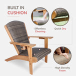 Enjoy outdoor relaxation with our camden 2 pieces teak outdoor adirondack chair with padded woven seat, crafted from durable indonesian teak, all-weather wicker, and quick-dry foam for lasting comfort. the warm earthy finish brings a cozy, upscale look to any patio, porch, deck, or backyard seating area. includes a water-resistant cover to keep your teak patio furniture clean and protected year-round.