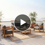 Upgrade your outdoor living with the harper teak wood outdoor 4 pieces conversation set, featuring two teak patio lounge chairs, one spacious outdoor sofa, and a large round teak coffee table with a practical lower shelf. Crafted from premium solid teak wood responsibly sourced from Indonesia, this patio conversation set offers timeless style, long-lasting durability, and comfortable outdoor seating for everyday use. The weather-resistant cushions with removable covers make cleaning easier, while the modern clean-line design brings a sophisticated touch to any patio, deck, garden, or backyard — creating a warm inviting space for relaxing or entertaining outside.