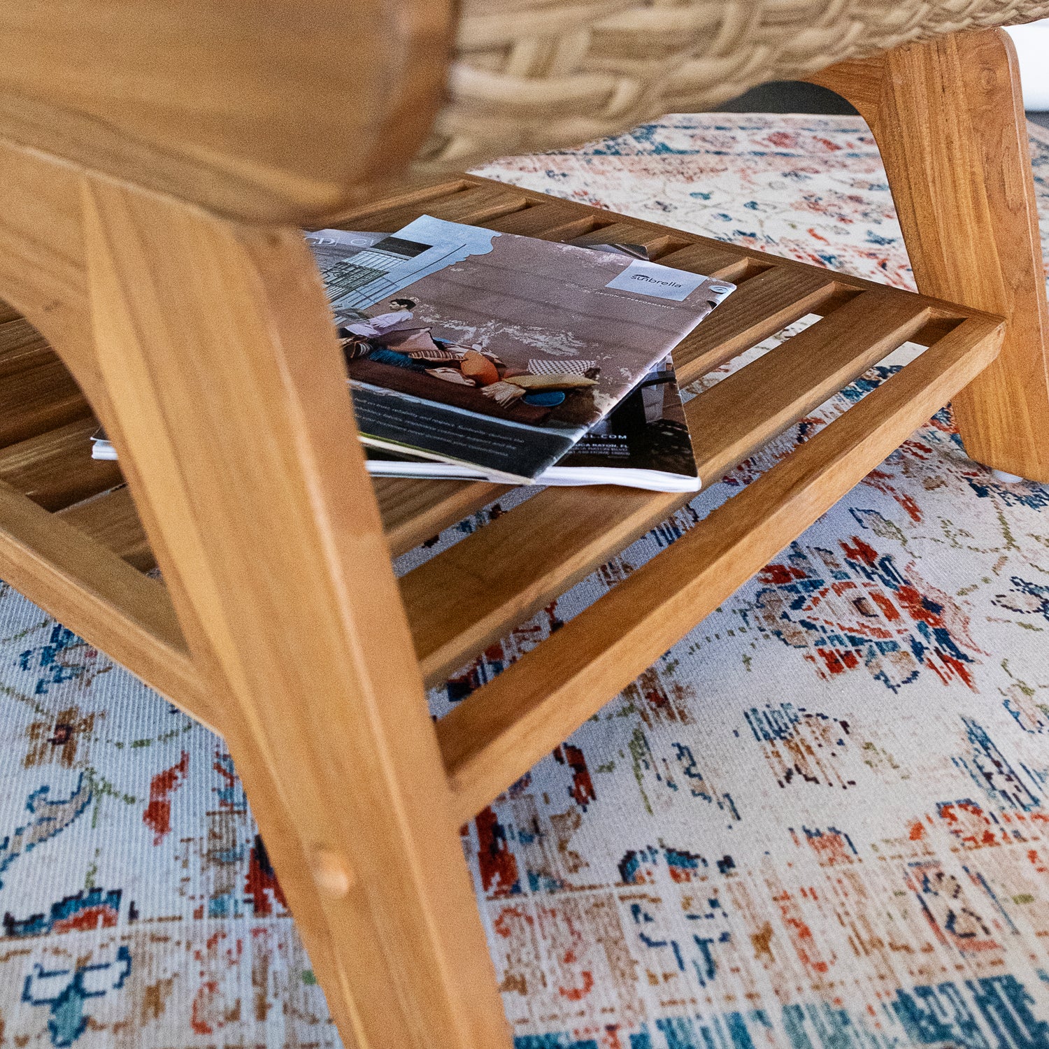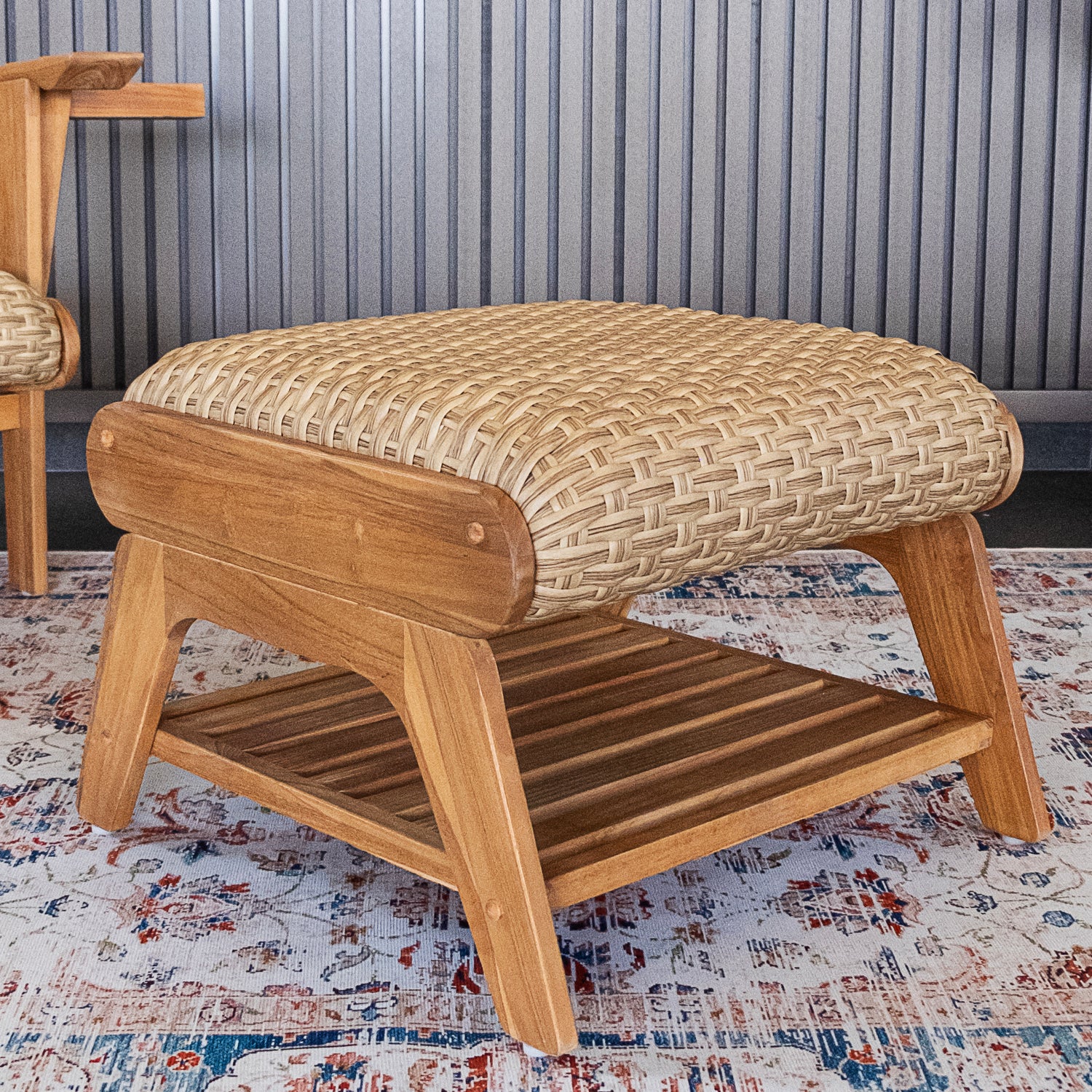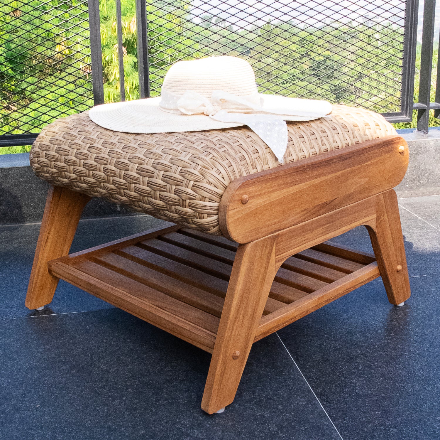 Add comfort and style to your patio setting with the camden padded woven seat teak outdoor ottoman with furniture cover. This teak wood outdoor ottoman combines the earthy texture of all-weather wicker with the strength and elegance of solid Indonesian teak wood. Designed to withstand the elements, it features quick-dry foam and a furniture cover for year-round protection. Whether used as a footrest or extra seating, this patio ottoman brings a timeless and natural look to any outdoor space.