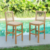 Introducing the eden teak wood 2 pieces outdoor barstool with honey twist wicker, blending elegance and durability for your outdoor bar or counter. Crafted from premium Indonesian teak with a finely sanded natural finish and honey twist synthetic wicker accents, these barstools elevate any alfresco setting.