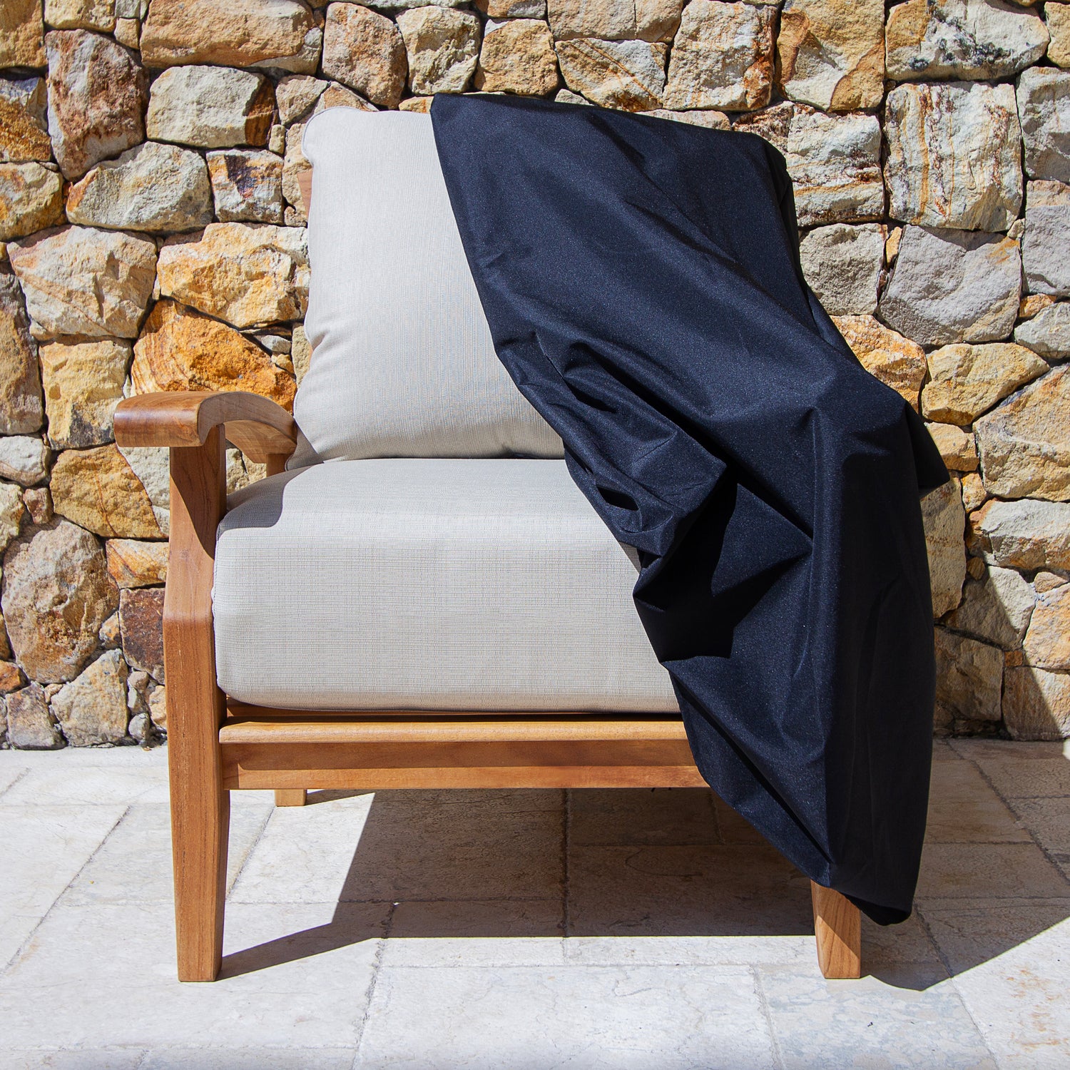 This lounge chair cover offers a tailored fit and securely fits most outdoor lounge chairs