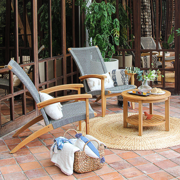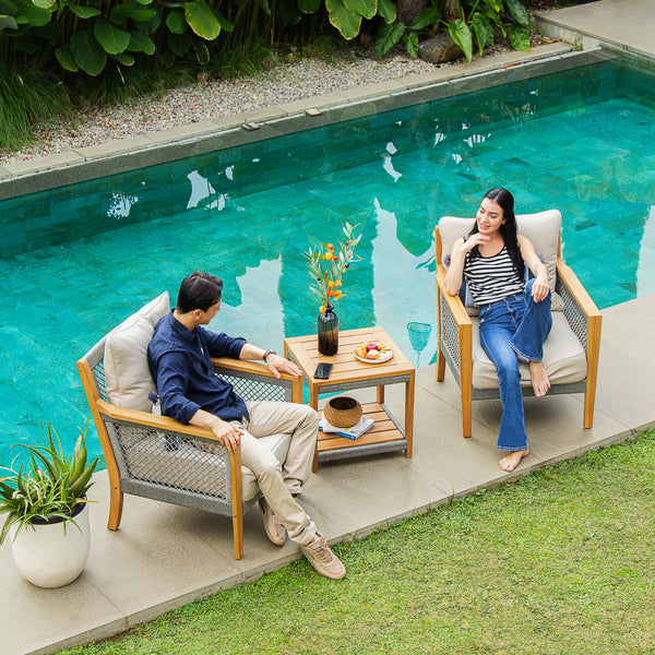 Cambridge Casual offers a variety of wood patio furniture sets, available in different styles, materials, sizes, and colors to suit any outdoor setting. Our patio conversation set options range from cozy two-seaters to spacious four-person arrangements, ensuring everyone finds their ideal match. If you love a farmhouse-style patio set, our Abbington and Caterina chat sets bring a fresh and inviting look. Prefer something bold? The Palma collection blends solid teak wood outdoor furniture with woven wicker for a sophisticated touch. For a unique and playful vibe, the Carlota collection adds character, while the Richmond range embodies timeless elegance loved by all generations. No matter your style, our chat sets will elevate your outdoor space.