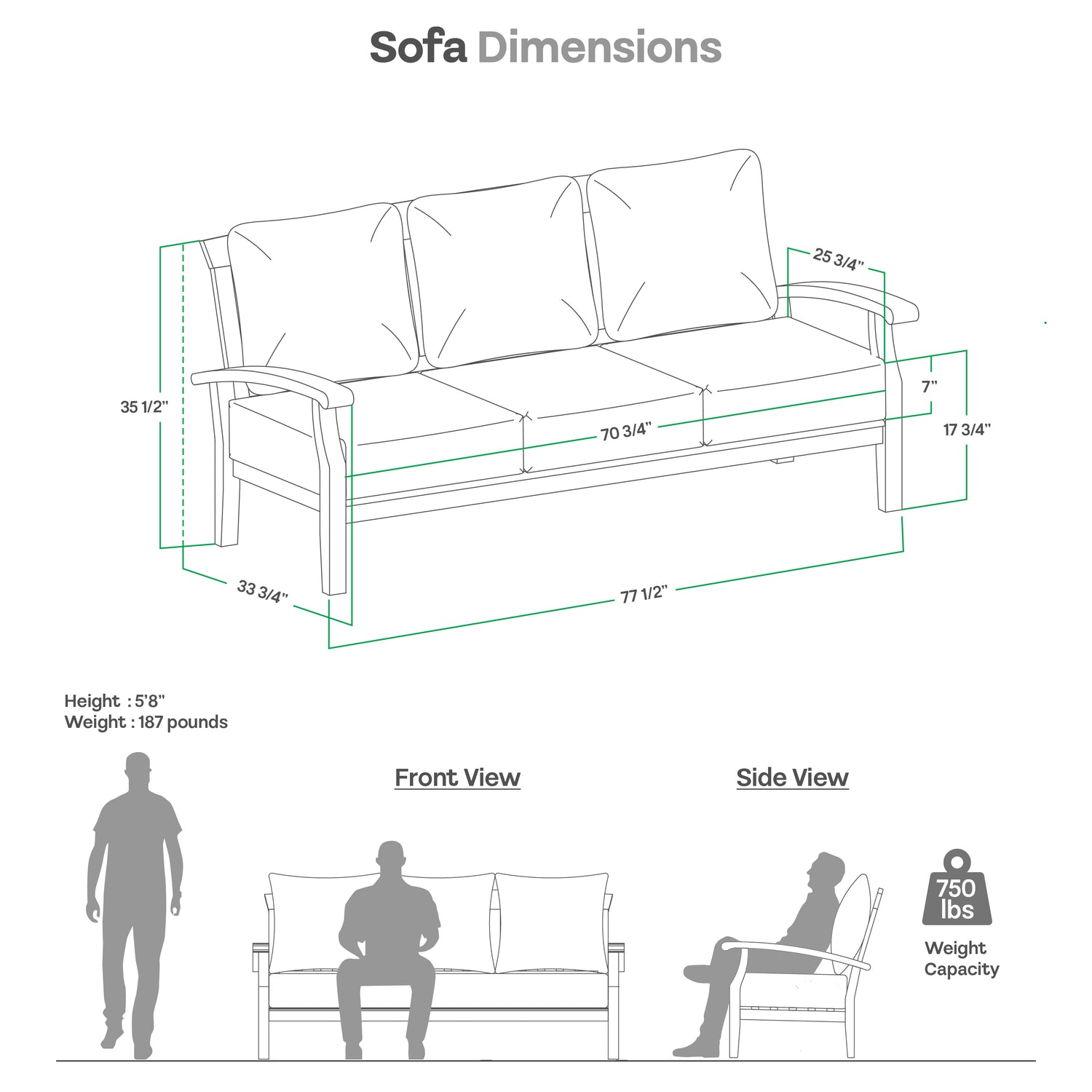 | Seat | 23.75" W x 24.5" D x 10.5" H |