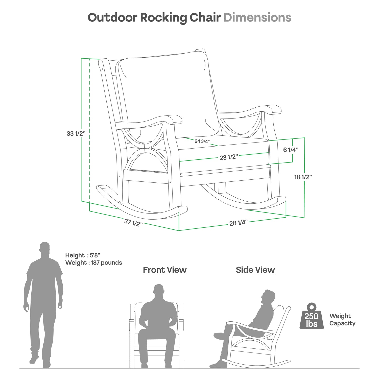 | Seat (without cushion) | 23.5" W x 24" D x 12" H |