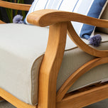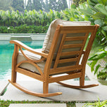 Ample seating space for comfort teak wood outdoor rocking chair with beige cushion