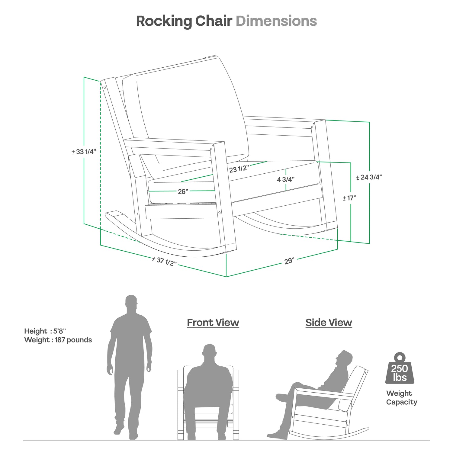 | Seat (without cushion) | 23.7" W x 26" D x 17" H |