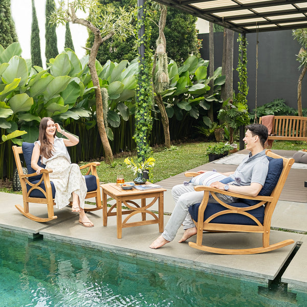 At Cambridge Casual, we craft every rocking chair to bring long-lasting comfort, beauty, and character to your home. From the Denver Mahogany Wood Porch Rocking Chair in classic black or white to the charming Alston Mahogany Wood Black Porch Rocking Chair with Blue Stripe Cushion, there’s a perfect match for every taste. Add a cozy touch with Moni Mahogany Wood Porch Rocking Chair Sets, available in White, Black, Red, Hunter Green, Slate Gray, or Celestial Blue, or enjoy the natural charm of the Plano Teak Wood Porch Rocking Chair Set of 2. For those who love refined comfort, the Abbington Teak Wood Outdoor Rocking Chair with Beige Cushion combines plush seating with elegant design. Each piece reflects enduring craftsmanship made to last through every season.