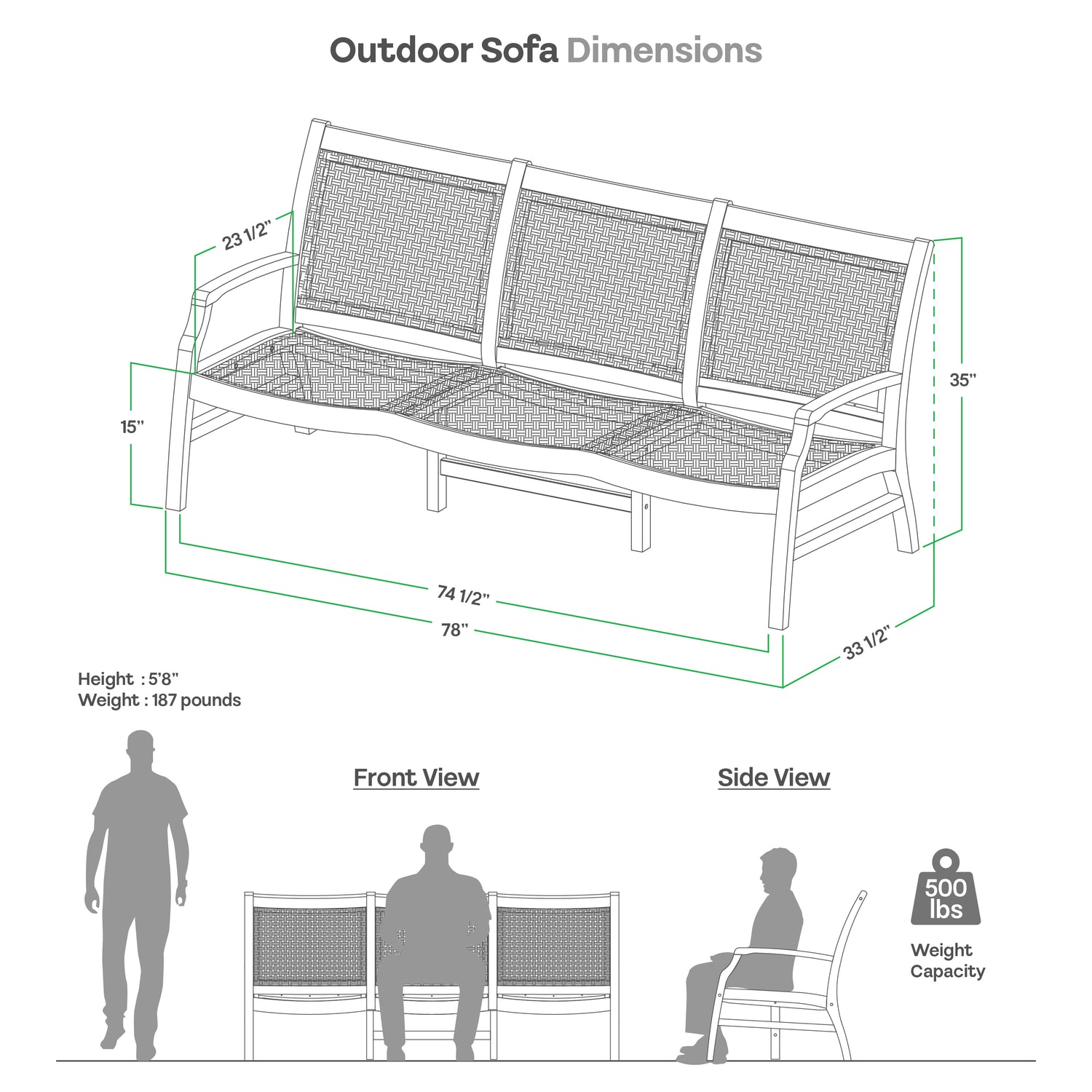 | Seat | 74.5" W x 23" D x 15.25" H |