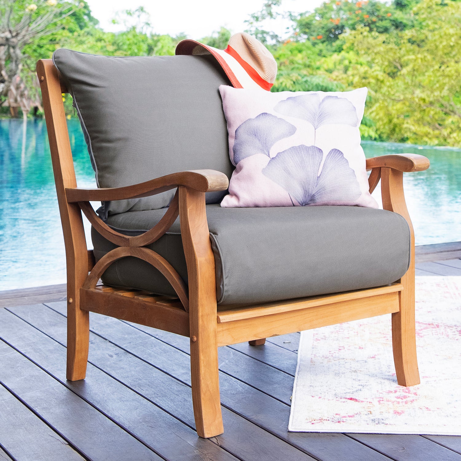 Immerse yourself in the timeless appeal of this teak wood 3-piece patio conversation set with gray cushions, designed for both comfort and lasting style. Crafted from premium Indonesian teak, known for its durability and strength, this set features a natural, finely sanded finish complemented by gray cushions. The olefin cushion covers are removable for easy cleaning and everyday maintenance.