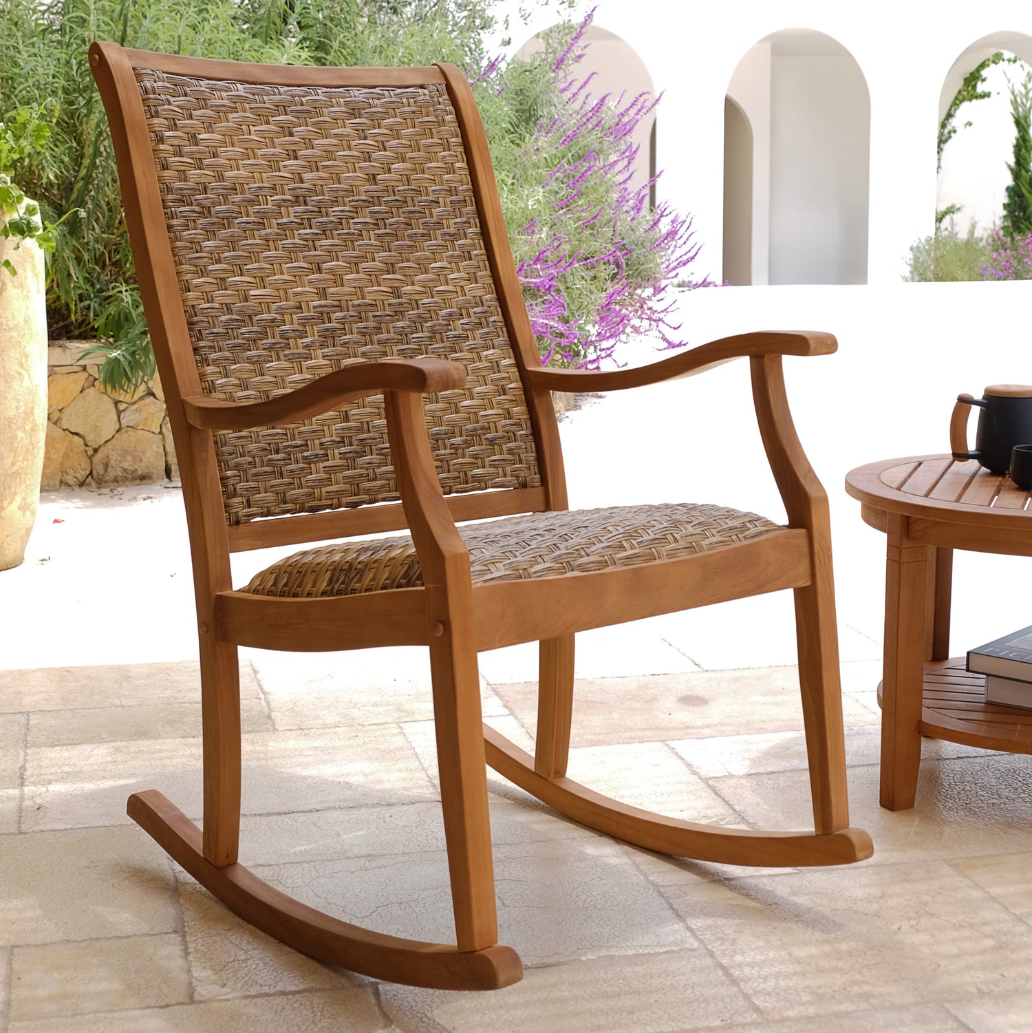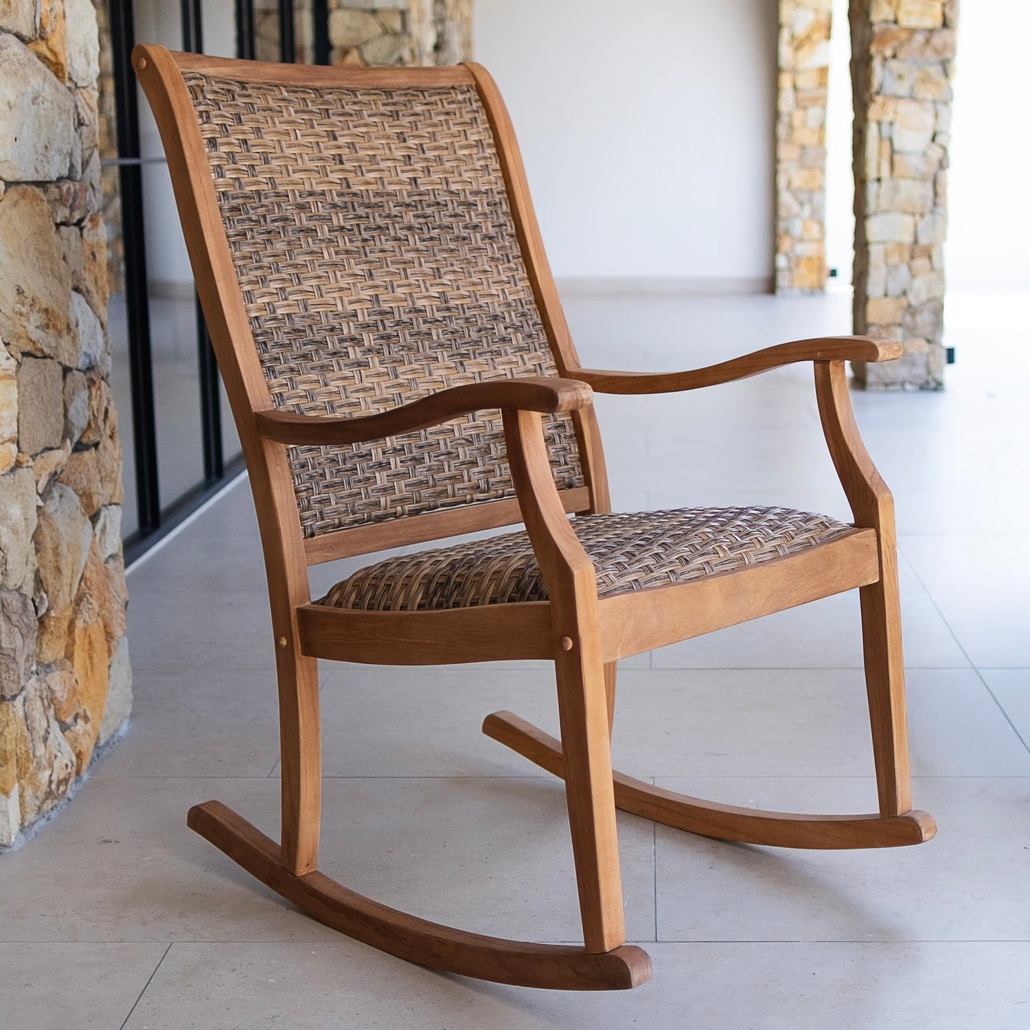 • Teak wood porch rocking chair offers a natural and sophisticated look