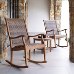 Dunham Teak Wood Outdoor Rocking Chair with Padded Woven Seat