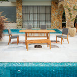utdoor dining experience. Crafted from superior Indonesian teak with a smooth, natural finish, the chairs offer solid back support and a comfortable seat, built for year round outdoor use.