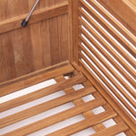 This Napa Teak Wood Outdoor Storage Deck Box combines timeless style with rugged functionality. Expertly handcrafted from premium Indonesian teak and finished with a fine natural sanding, it resists cracking, warping, and weather damage year-round. A thoughtfully designed slatted bottom keeps damp gear ventilated and dry, while the open-gap top allows rainwater to drain away. Plus, it comes complete with a custom-fit, water-resistant patio cover that shields your stored items from sun, rain, and debris—making this deck box the ultimate all-in-one solution for keeping cushions, garden tools, and outdoor toys protected and organized.