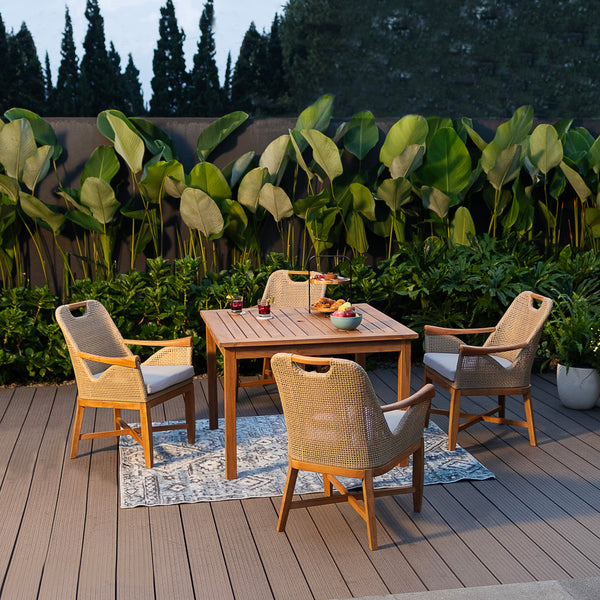 Designed with comfort in mind, each outdoor dining chair features a sleek silhouette, supportive armrests, and a soft seatpad—perfect for long meals or casual conversations. Pair them with the Sydney Teak Wood 7-Piece Outdoor Dining Set with Rectangular Dining Table, a complete outdoor dining set that combines style and practicality. For a more relaxed setup, explore the Cozy Outdoor Lounge Set for Poolside Comfort, which includes ergonomic teak wood and wicker lounge chairs perfect for unwinding by the pool. Whether dining or lounging, our collections offer the right mix of design and function for your outdoor space.