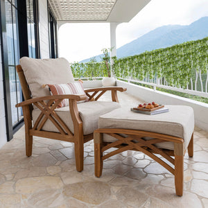 Carmel Teak Wood Outdoor Lounge Chair with Ottoman Tan Cushion