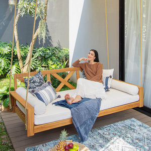 Napa Teak Wood Outdoor Swing Daybed with Off-White Cushion