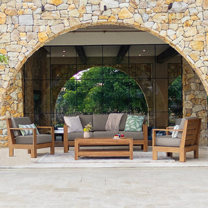 Logan Teak Wood 5 Pieces Patio Conversation Set with Sunbrella Vellum Cushion
