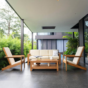 Logan Teak Wood 4 Pieces Patio Conversation Set with Sunbrella Vellum Cushion