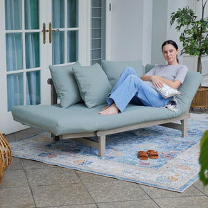 Carlota Outdoor Convertible Sofa Daybed - Weathered Gray Wood / Blue Spruce Cushion