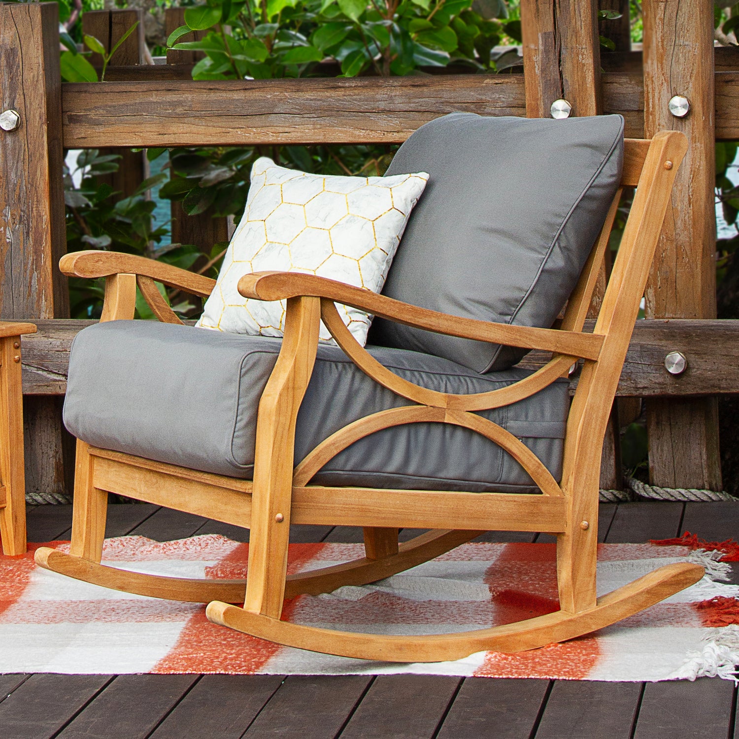 Abbington Teak Wood Outdoor Rocking Chair with Gray Cushion