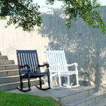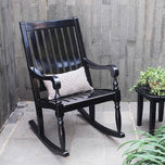Enhance your porch with the Bonn Mahogany Wood Black Oversized Porch Rocking Chair, crafted from durable Indonesian mahogany wood with a weather-resistant black finish. This oversized rocking chair features an ergonomic rocking chair design for superior comfort and a sturdy mahogany rocking chair frame built to last. Perfect as a porch rocking chair, outdoor rocking chair, or stylish black porch rocking chair for timeless outdoor relaxation.