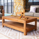 Immerse yourself in the allure of the Teak Wood Outdoor Coffee Table, an embodiment of enduring elegance and functionality. Crafted with a strong and durable excelent Indonesian teak frame, this table boasts a natural teak finely sanded finish and a large underneath shelf, adding both sturdiness and ample storage space for your outdoor essentials.