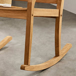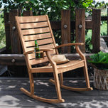 Enhance your outdoor relaxation with the Teak Wood Porch Rocking Chair with Cup Holder. Crafted from durable teak panels using solid mortise and tenon construction, this rocking chair boasts a natural, finely sanded finish that blends seamlessly with any porch or patio decor. It features a convenient cup holder built into the right armrest, providing easy access to your favorite beverages while you unwind.