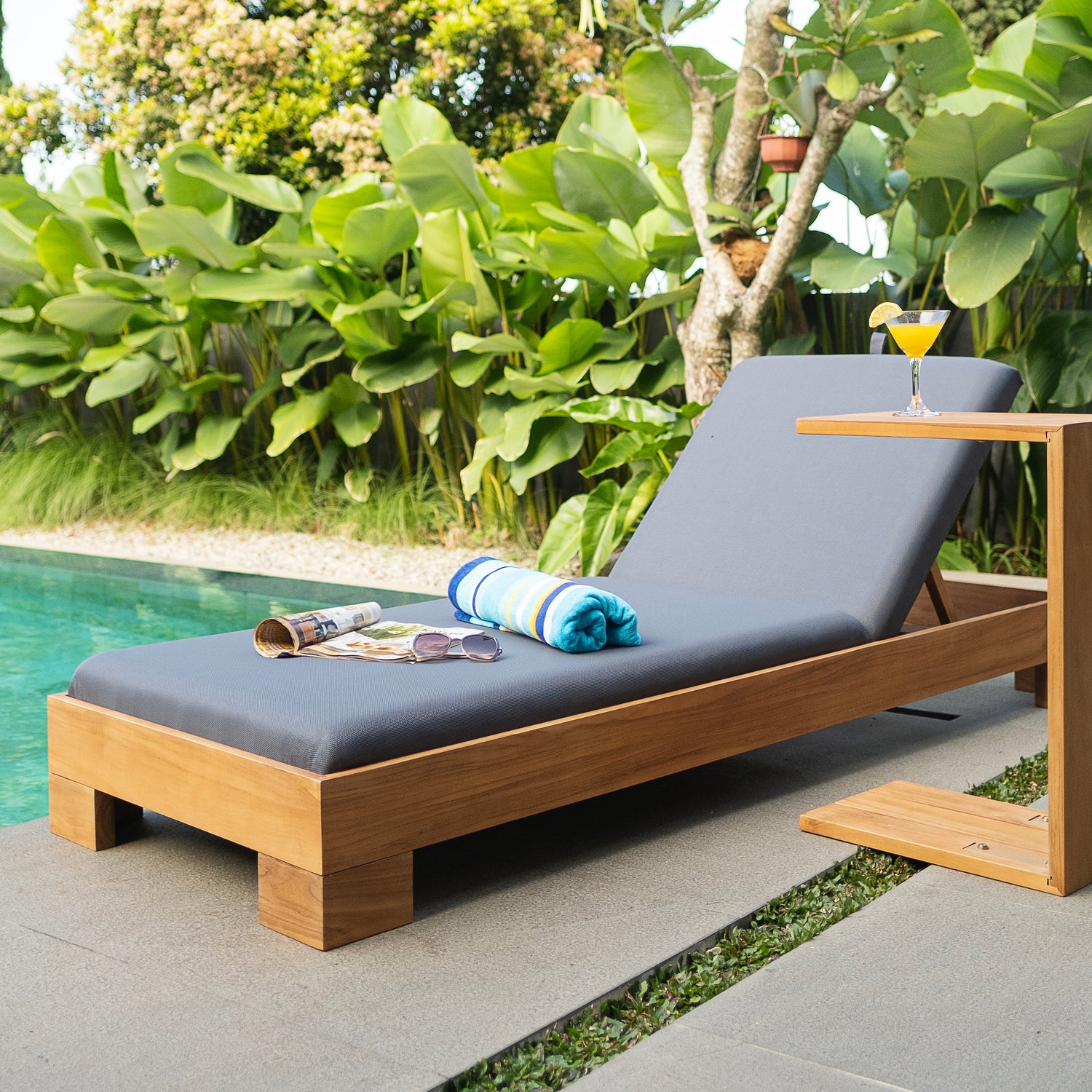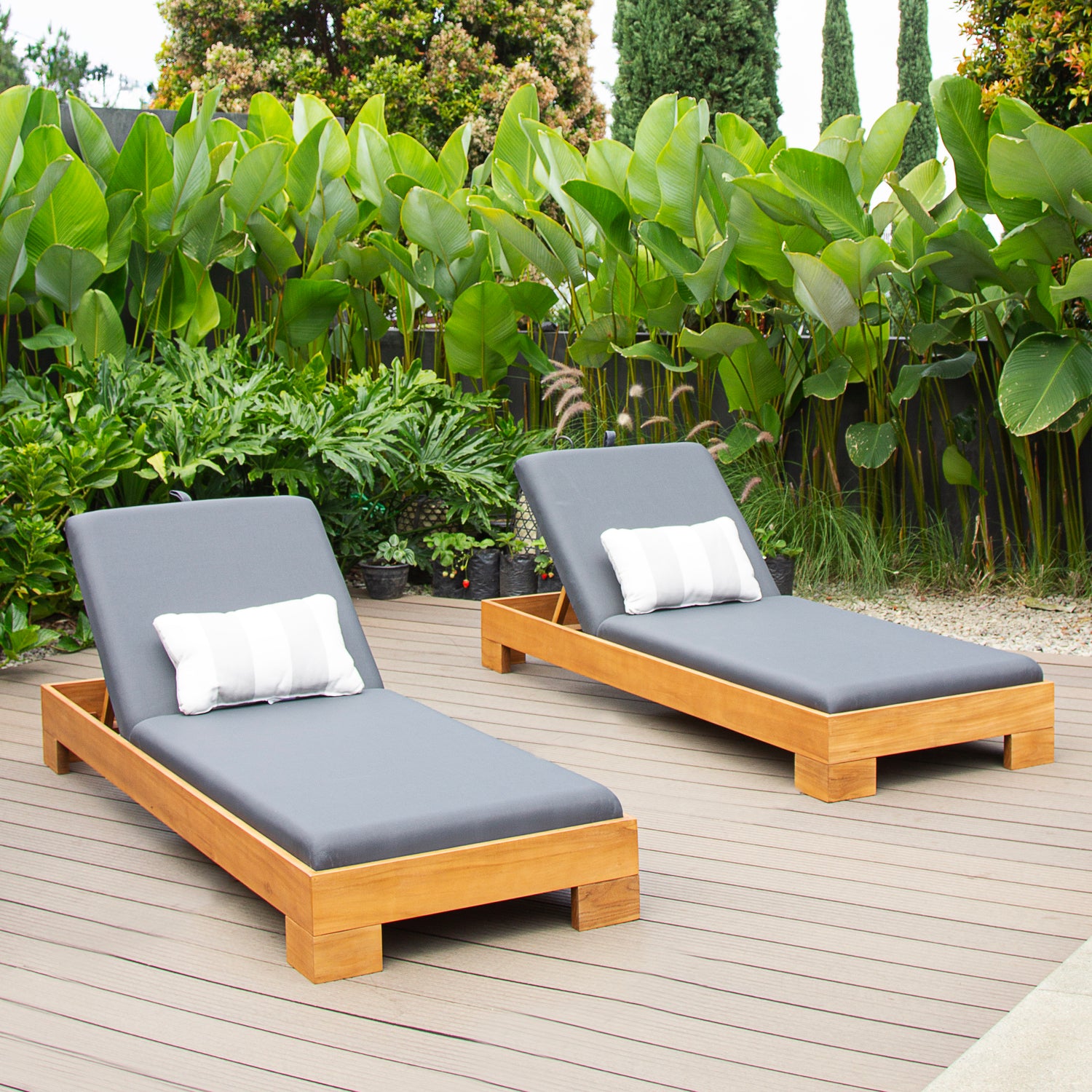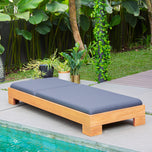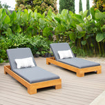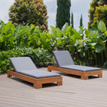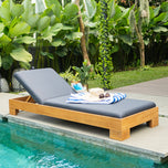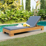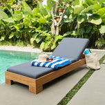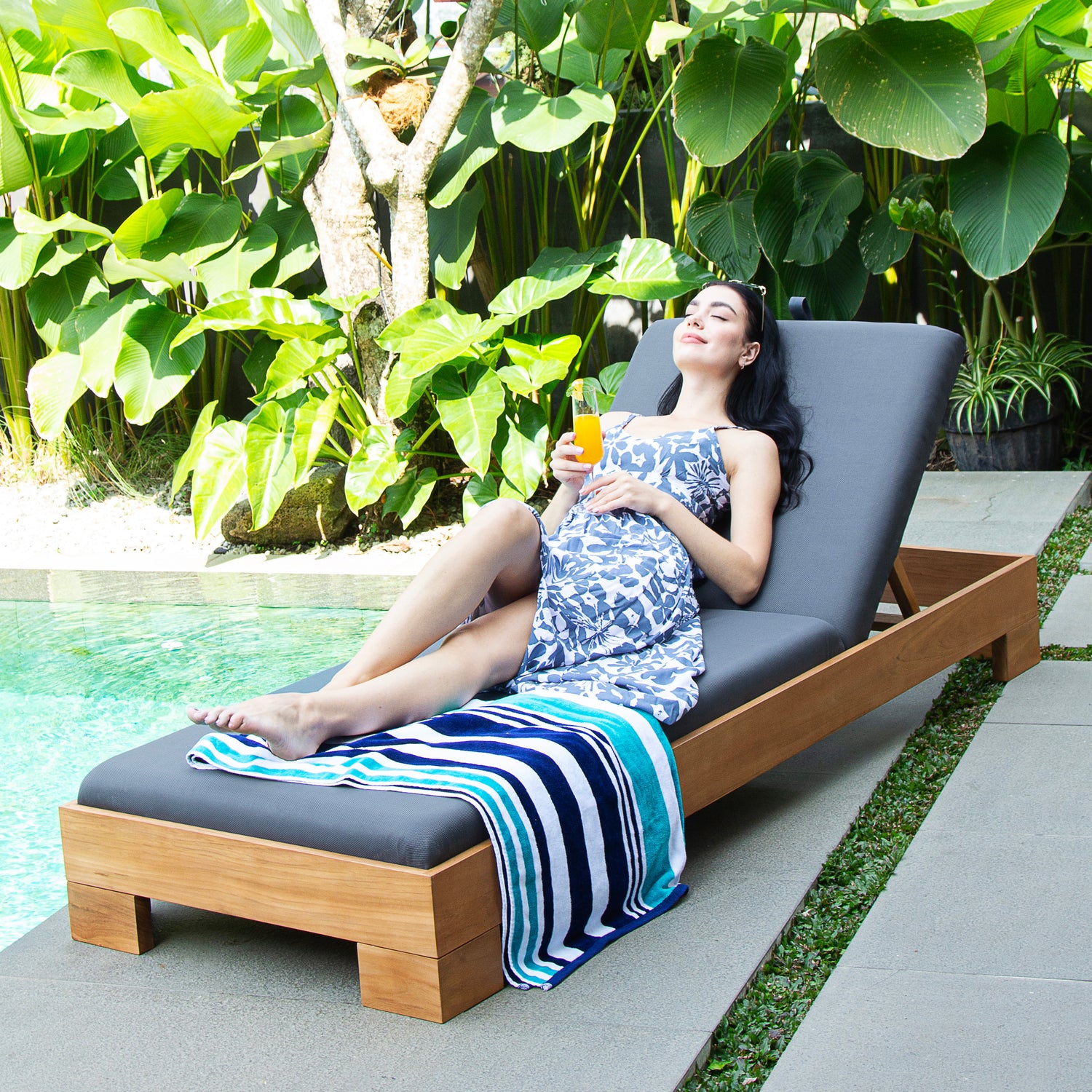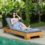Napa teak wood outdoor chaise lounge gray cushion with furniture patio cover brings together natural elegance and modern outdoor comfort. This striking teak wood outdoor chaise lounge features a finely sanded natural teak finish, crafted from premium Indonesian teak known for its exceptional durability and resistance to outdoor elements. Designed for long-lasting relaxation, it comes with a textilene gray cushion for breathable comfort and a furniture cover to keep the lounge clean and protected through changing seasons.