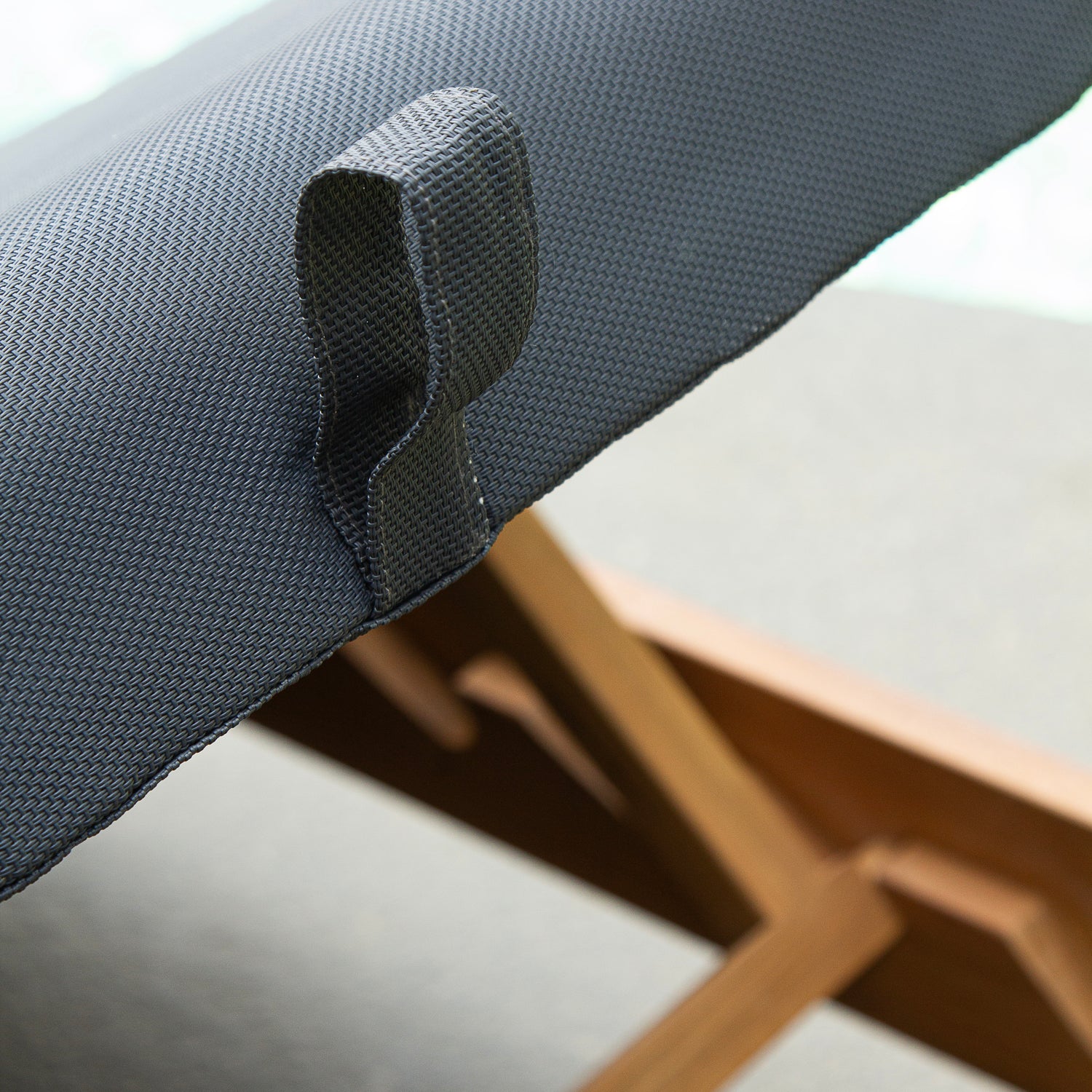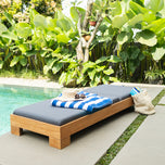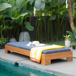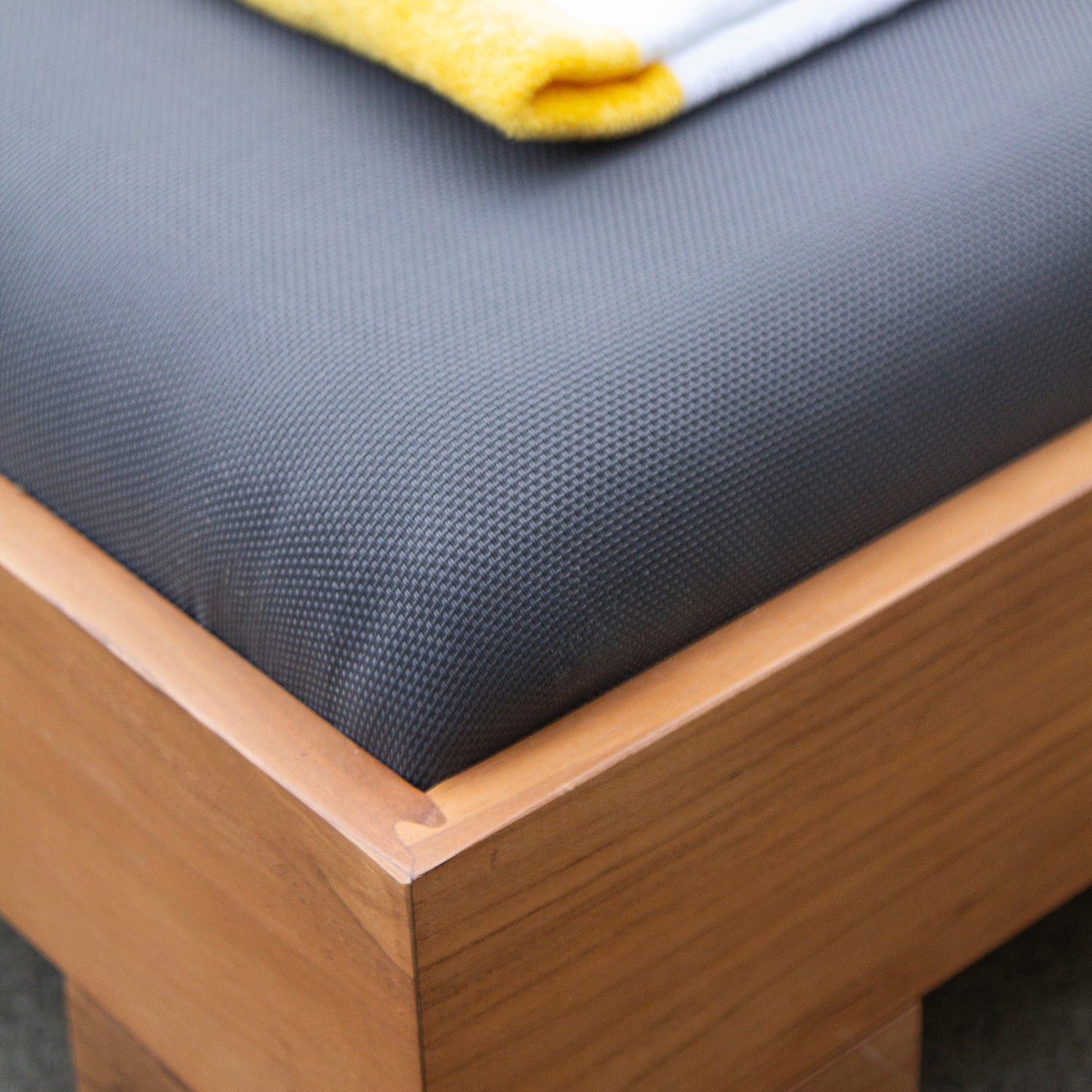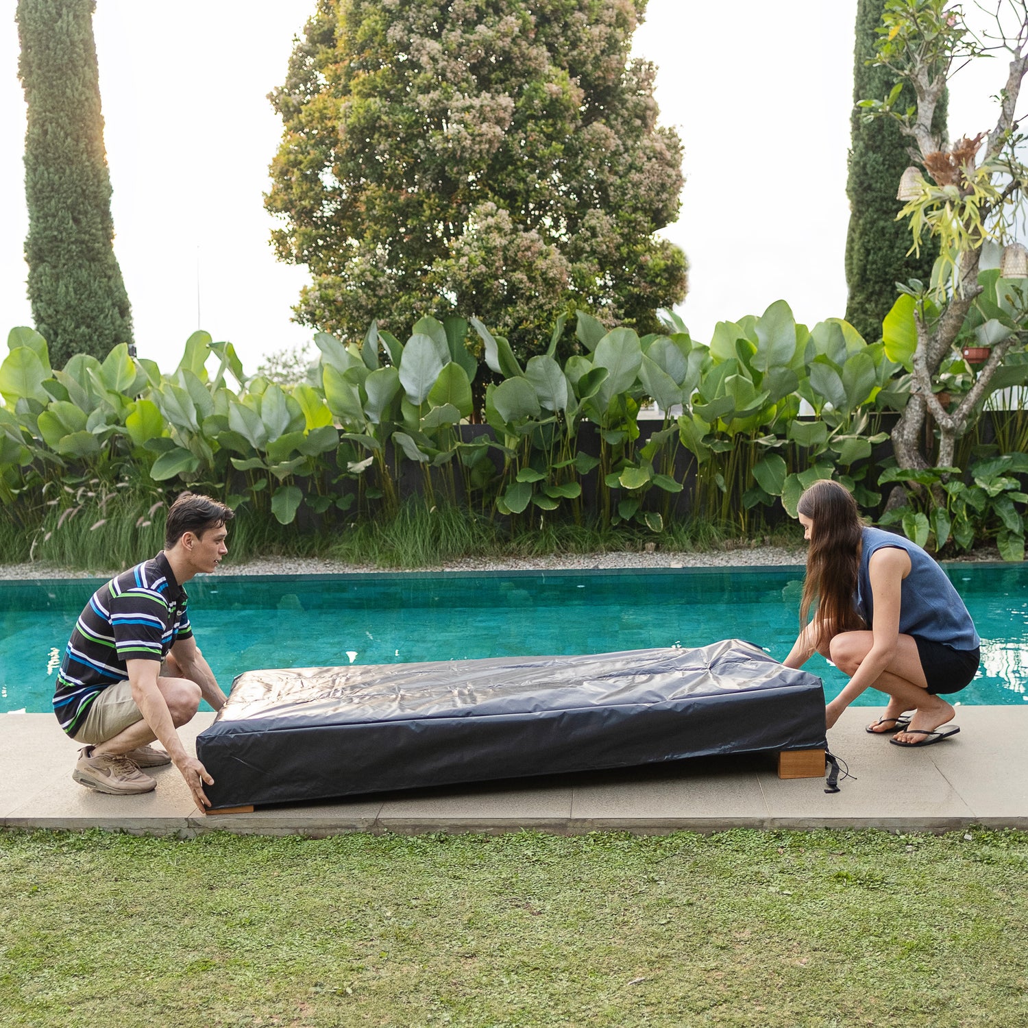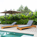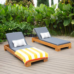 Napa teak wood outdoor chaise lounge gray cushion with furniture patio cover brings together natural elegance and modern outdoor comfort. This striking teak wood outdoor chaise lounge features a finely sanded natural teak finish, crafted from premium Indonesian teak known for its exceptional durability and resistance to outdoor elements. Designed for long-lasting relaxation, it comes with a textilene gray cushion for breathable comfort and a furniture cover to keep the lounge clean and protected through changing seasons.