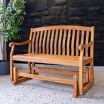The teak wood outdoor glider bench is a captivating fusion of style and substance, destined to elevate any outdoor oasis. Crafted using premium Indonesian teak wood, this bench exudes an unwavering commitment to quality and longevity, ensuring it remains a steadfast companion for years to come.